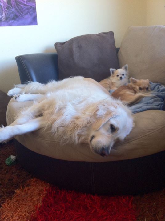 Then there are all my 4 legged brothers & sisters, Bella – She is a cat and my equal she’s 6 years old. Demi – She is a Golden Retriever and cool she’s 6 years old. Sasha & Honey – They are sisters and Maine Coon cats they are also 6 years old. Bailey – He is also a Chihuahua (who is overweight and thinks he is a Rottweiler) is 6 as well. Squidge – She is the youngest cat and only 4 years old. Henry – He is the youngest Chihuahua (who is scared of everything and thinks he is a parrot) he is 2 years old. Gemma – She is a Swiss Shepherd and the youngest of the family (she is going through the ganglies no control of her legs, I’m too old for this) she is only 8 months. Sometimes I think that every time I let my two legs out of my sight they bring home another brother or sister.