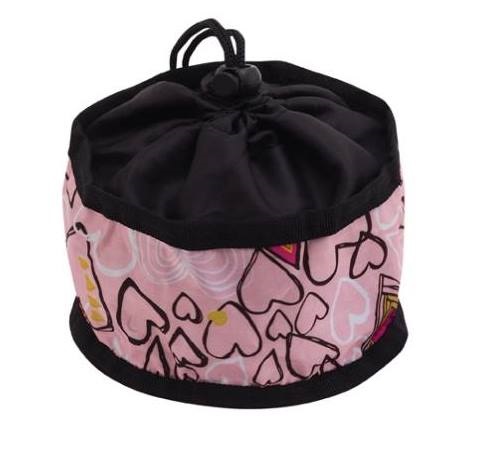 Who says travel bowls have to be boring? Why not spice up the trip with our colourful designs. Top has a drawstring closure for food and open for water. Fold in half and close with a press stud.